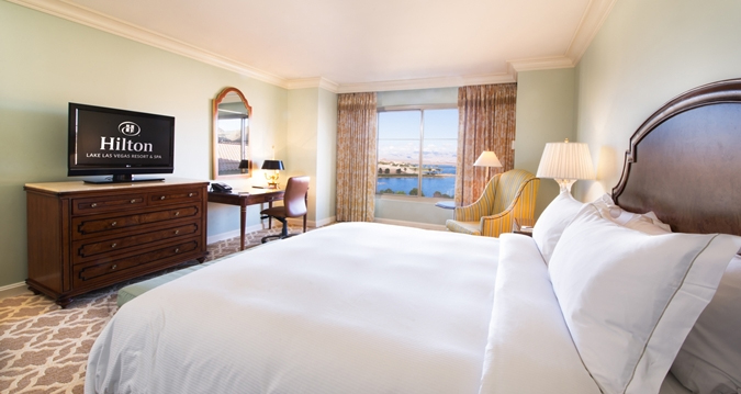 Elegance and comfort merge in our 486 sq.ft. guest rooms featuring Hilton Serenity Beds, helpful amenities and enchanting views of Lake Las Vegas o